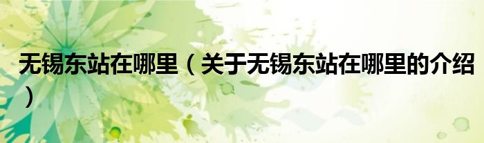 1、无锡东站(Wuxidong Railway Station),位于中国江苏省无锡市,是隶属于中国铁路上海局集团有限公司的铁路车站,是京沪高速铁路上的中间站。