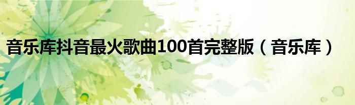 大家好,雨雨来为大家解答以上问题,音乐库抖音最火歌曲100首完整版,音乐库很多人还不知道,现在让我们一起来看看吧!