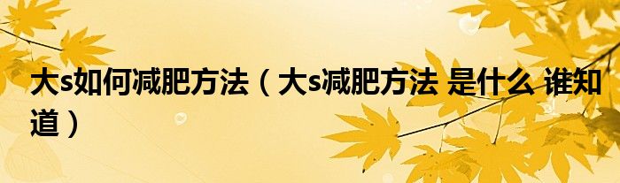 关于大s如何减肥方法,大s减肥方法 是什么 谁知道这个很多人还不知道,今天菲菲来为大家解答以上的问题,现在让我们一起来看看吧!