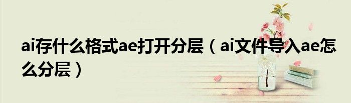 关于ai存什么格式ae打开分层,ai文件导入ae怎么分层这个很多人还不知道,今天菲菲来为大家解答以上的问题,现在让我们一起来看看吧!