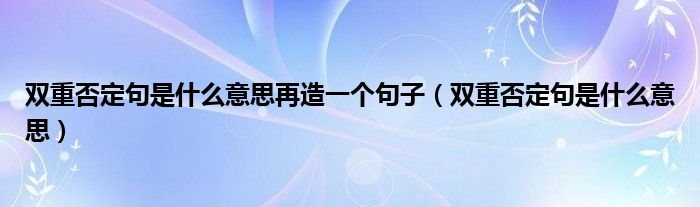 关于双重否定句是什么意思再造一个句子,双重否定句是什么意思这个很多人还不知道,今天菲菲来为大家解答以上的问题,现在让我们一起来看看吧!