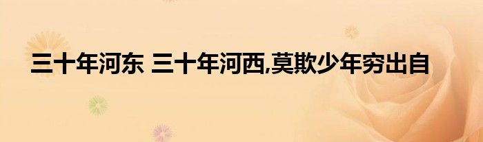 关于三十年河东 三十年河西,莫欺少年穷出自这个很多人还不知道,今天菲菲来为大家解答以上的问题,现在让我们一起来看看吧!