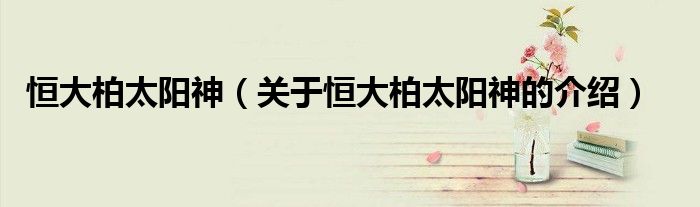 大家好,今天小乐来为大家解答以上的问题。恒大柏太阳神,关于恒大柏太阳神的介绍很多人还不知道,现在让我们一起来看看吧!