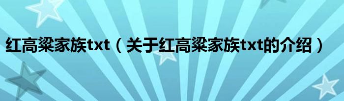 大家好,今天小乐来为大家解答以上的问题。红高粱家族txt,关于红高粱家族txt的介绍很多人还不知道,现在让我们一起来看看吧!