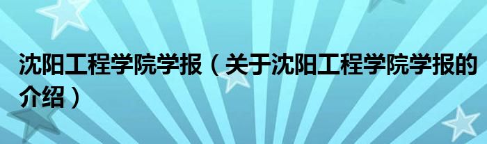 大家好,今天小乐来为大家解答以上的问题。沈阳工程学院学报,关于沈阳工程学院学报的介绍很多人还不知道,现在让我们一起来看看吧!