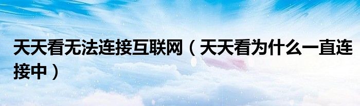 大家好,雨雨来为大家解答以上问题,天天看无法连接互联网,天天看为什么一直连接中很多人还不知道,现在让我们一起来看看吧!