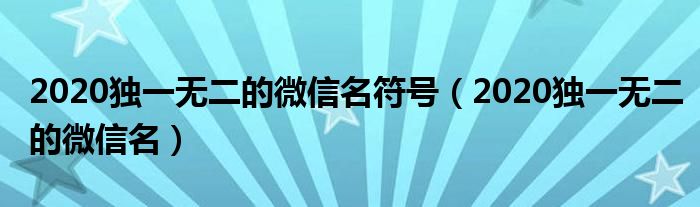 大家好,雨雨来为大家解答以上问题,2020独一无二的微信名符号,2020独一无二的微信名很多人还不知道,现在让我们一起来看看吧!
