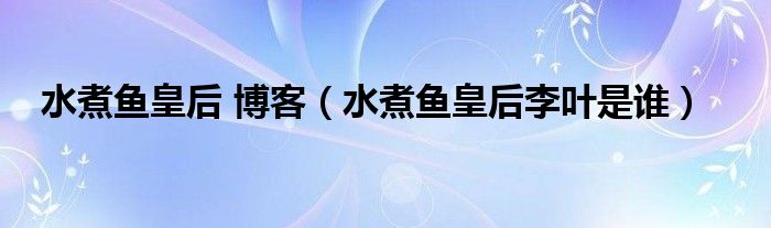 关于水煮鱼皇后 博客,水煮鱼皇后李叶是谁这个很多人还不知道,今天菲菲来为大家解答以上的问题,现在让我们一起来看看吧!