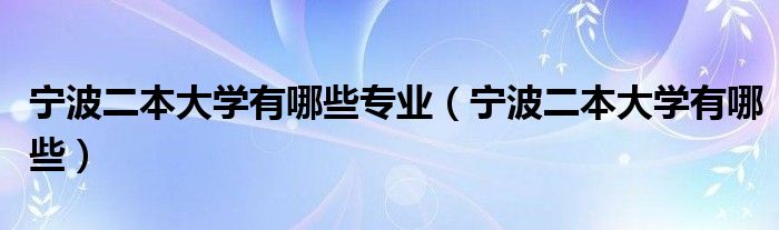 关于宁波二本大学有哪些专业,宁波二本大学有哪些这个很多人还不知道,今天菲菲来为大家解答以上的问题,现在让我们一起来看看吧!