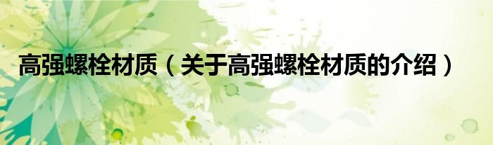大家好,今天小乐来为大家解答以上的问题。高强螺栓材质,关于高强螺栓材质的介绍很多人还不知道,现在让我们一起来看看吧!
