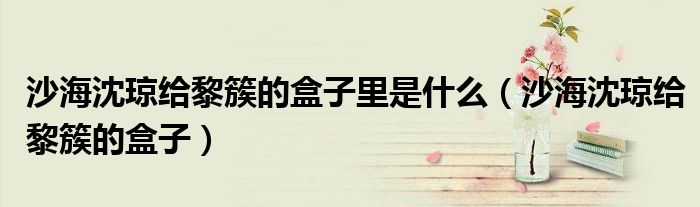 大家好,小晋来为大家解答以下问题,关于沙海沈琼给黎簇的盒子里是什么,沙海沈琼给黎簇的盒子很多人还不知道,今天让我们一起来看看吧!