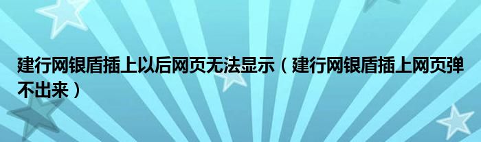 建行网银盾插上以后网页无法显示(建行网银盾插上网页弹不出来)