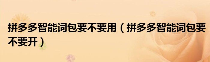 大家好,跳跳为你解答以上问题。拼多多智能词包要不要用,拼多多智能词包要不要开这个问题很多人还不知道,现在让我们一起来看看吧!