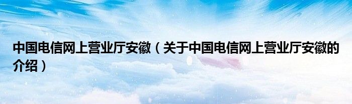 中国电信网上营业厅安徽(关于中国电信网上营业厅安徽的介绍)