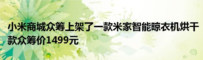 2022年1月12日整理发布:上个月,小米商城众筹上架了一款米家智能晾衣机烘干款,众筹价1499元,获得超过7500人支持,筹资破百万。