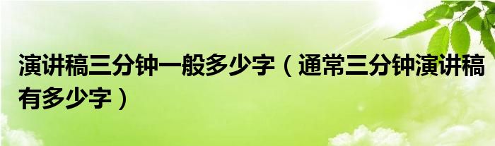 1、一般人的正常语速在每分钟80到160字左右 我国播音员每分钟正常语速为240字 作为演讲,一般语速度控制在100-140字/分钟,所以3分钟演讲稿300到450字. 不过也要因人而异。