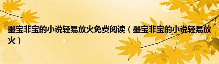 关于墨宝非宝的小说轻易放火免费阅读,墨宝非宝的小说轻易放火这个很多人还不知道,今天菲菲来为大家解答以上的问题,现在让我们一起来看看吧!