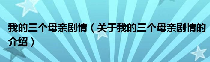 大家好,今天小乐来为大家解答以上的问题。我的三个母亲剧情,关于我的三个母亲剧情的介绍很多人还不知道,现在让我们一起来看看吧!