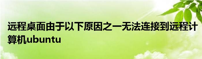 关于远程桌面由于以下原因之一无法连接到远程计算机ubuntu这个很多人还不知道,今天菲菲来为大家解答以上的问题,现在让我们一起来看看吧!