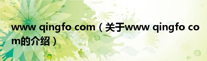 www qingfo com(关于www qingfo com的介绍)