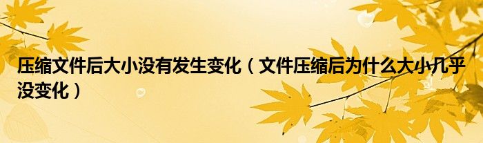 关于压缩文件后大小没有发生变化,文件压缩后为什么大小几乎没变化这个很多人还不知道,今天菲菲来为大家解答以上的问题,现在让我们一起来看看吧!
