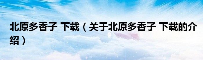 北原多香子 下载(关于北原多香子 下载的介绍)