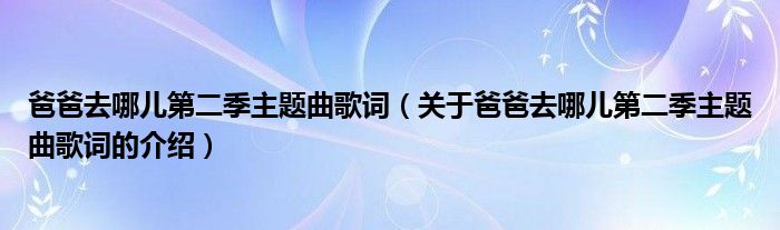 大家好,今天小乐来为大家解答以上的问题。爸爸去哪儿第二季主题曲歌词,关于爸爸去哪儿第二季主题曲歌词的介绍很多人还不知道,现在让我们一起来看看吧!
