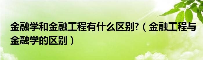 关于金融学和金融工程有什么区别?,金融工程与金融学的区别这个很多人还不知道,今天菲菲来为大家解答以上的问题,现在让我们一起来看看吧!