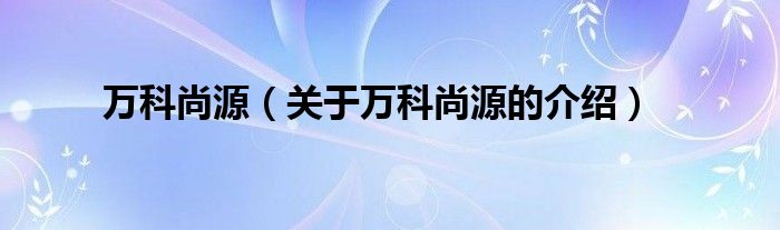 大家好,今天小乐来为大家解答以上的问题。万科尚源,关于万科尚源的介绍很多人还不知道,现在让我们一起来看看吧!