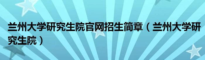 关于兰州大学研究生院官网招生简章,兰州大学研究生院这个很多人还不知道,今天菲菲来为大家解答以上的问题,现在让我们一起来看看吧!