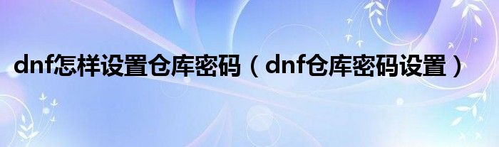 关于dnf怎样设置仓库密码,dnf仓库密码设置这个很多人还不知道,今天菲菲来为大家解答以上的问题,现在让我们一起来看看吧!