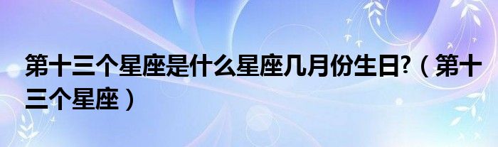 关于第十三个星座是什么星座几月份生日?,第十三个星座这个很多人还不知道,今天菲菲来为大家解答以上的问题,现在让我们一起来看看吧!