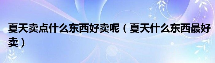 关于夏天卖点什么东西好卖呢,夏天什么东西最好卖这个很多人还不知道,今天菲菲来为大家解答以上的问题,现在让我们一起来看看吧!
