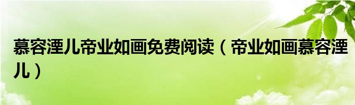 关于慕容湮儿帝业如画免费阅读,帝业如画慕容湮儿这个很多人还不知道,今天菲菲来为大家解答以上的问题,现在让我们一起来看看吧!