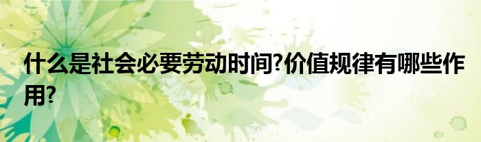 关于什么是社会必要劳动时间?价值规律有哪些作用?这个很多人还不知道,今天菲菲来为大家解答以上的问题,现在让我们一起来看看吧!