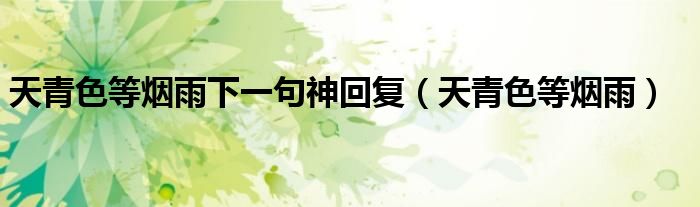 关于天青色等烟雨下一句神回复,天青色等烟雨这个很多人还不知道,今天菲菲来为大家解答以上的问题,现在让我们一起来看看吧!