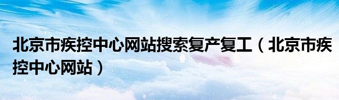 关于北京市疾控中心网站搜索复产复工,北京市疾控中心网站这个很多人还不知道,今天菲菲来为大家解答以上的问题,现在让我们一起来看看吧!