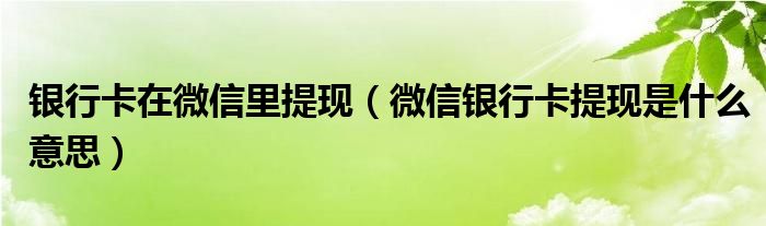 大家好,小晋来为大家解答以下问题,关于银行卡在微信里提现,微信银行卡提现是什么意思很多人还不知道,今天让我们一起来看看吧!