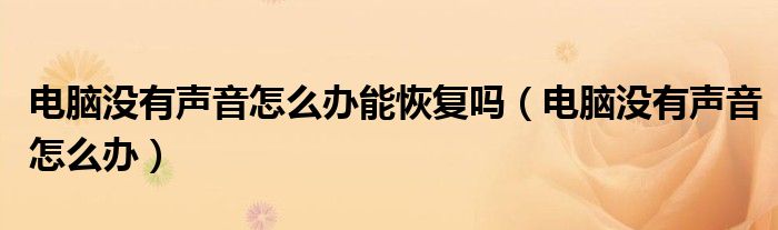 大家好,雨雨来为大家解答以上问题,电脑没有声音怎么办能恢复吗,电脑没有声音怎么办很多人还不知道,现在让我们一起来看看吧!