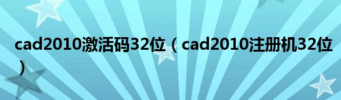 关于cad2010激活码32位,cad2010注册机32位这个很多人还不知道,今天菲菲来为大家解答以上的问题,现在让我们一起来看看吧!