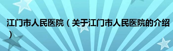 大家好,小都来为大家解答以上的问题。江门市人民医院,关于江门市人民医院的介绍很多人还不知道,现在让我们一起来看看吧!