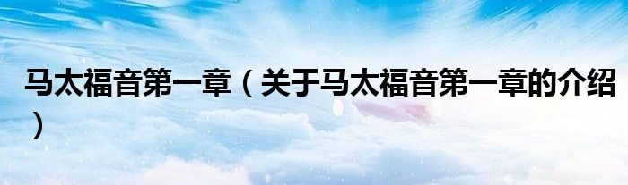 大家好,小都来为大家解答以上的问题。马太福音第一章,关于马太福音第一章的介绍很多人还不知道,现在让我们一起来看看吧!