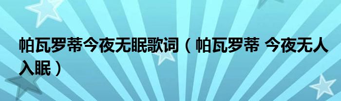 帕瓦罗蒂今夜无眠歌词,帕瓦罗蒂 今夜无人入眠这个很多人还不知道,小飞来为大家解答以上的问题。现在让我们一起来看看吧!