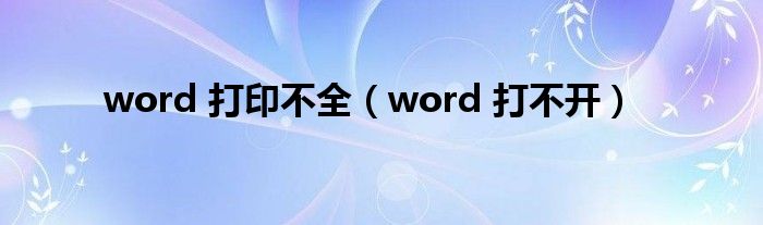 大家好,雨雨来为大家解答以上问题,word 打印不全,word 打不开很多人还不知道,现在让我们一起来看看吧!
