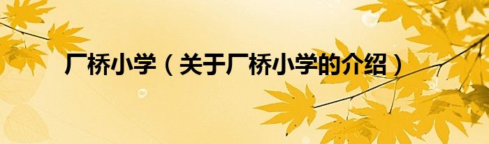 大家好,小都来为大家解答以上的问题。厂桥小学,关于厂桥小学的介绍很多人还不知道,现在让我们一起来看看吧!