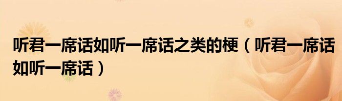 听君一席话如听一席话之类的梗,听君一席话如听一席话很多人还不知道,乐乐来为大家解答以上问题,现在让我们一起来看看吧!