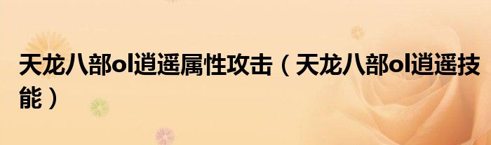天龙八部ol逍遥属性攻击,天龙八部ol逍遥技能很多人还不知道,乐乐来为大家解答以上问题,现在让我们一起来看看吧!