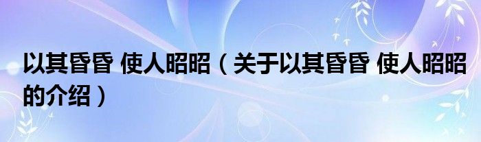 大家好,小都来为大家解答以上的问题。以其昏昏 使人昭昭,关于以其昏昏 使人昭昭的介绍很多人还不知道,现在让我们一起来看看吧!