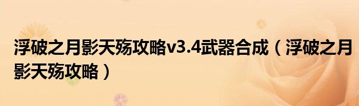 浮破之月影天殇攻略v3.4武器合成,浮破之月影天殇攻略这个很多人还不知道,小飞来为大家解答以上的问题。现在让我们一起来看看吧!