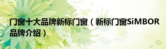大家好,小源来为大家解答以上问题。门窗十大品牌新标门窗,新标门窗SiMBOR品牌介绍很多人还不知道,现在让我们一起来看看吧!
